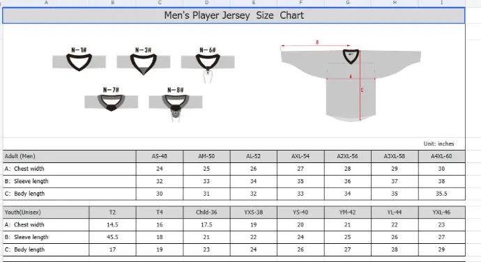 Sizing Chart - Players