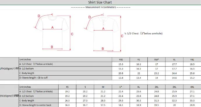 Sizing chart